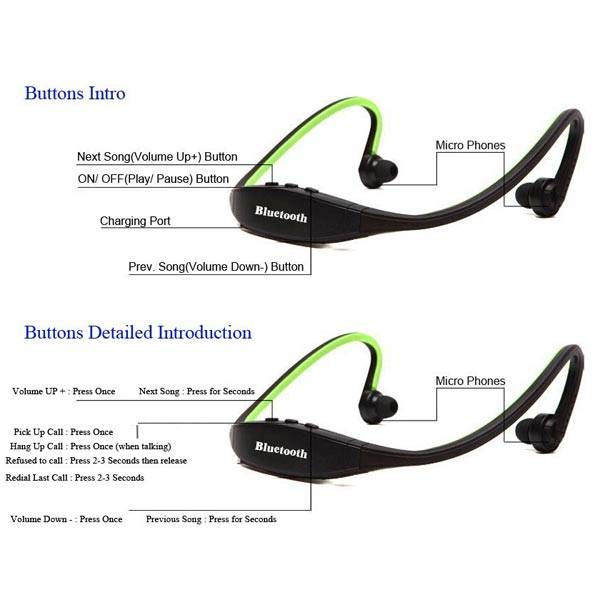 Wireless Bluetooth Sports Headphones Headset Mic Earphones For iPhone Description:Portable design, light weight