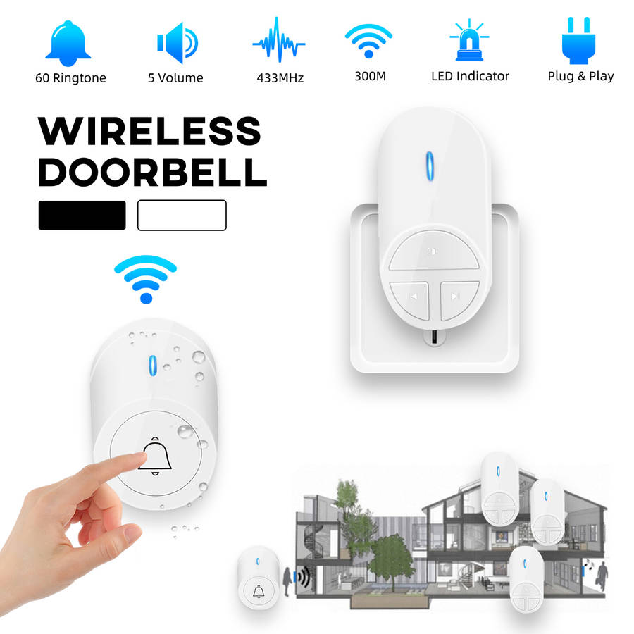 Product | Wireless Doorbell Plug & Play Door Bell Kit Plug-in Receiver 300M |