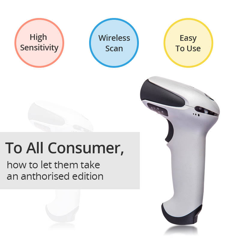 The wireless handheld barcode scanner can be used in various places such as commercial POS System, Supermarket, store, shop, mall, warehouse and logistics, libraries, banks, transportation, postal service, industrial, manufacturing and management