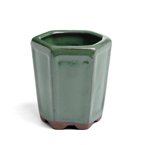 A choice of a glazed 9.5cm x 8.5cm x 8.5cm Cascade Bonsai Container - Dark green in colour.