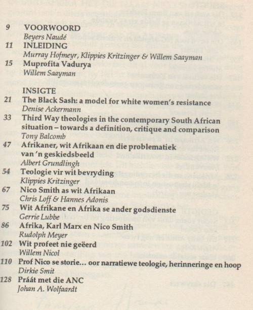 INSIGTE SOOS BV "TEOLOGIE VIR WIT BEVRYDING; THE BLACK SASH: A MODEL FOR WHITE WOMEN'S RESISTANCE; WIT PROFEET NIE GEEERD EN PRAAT MET ANC!!"