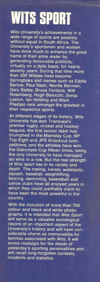 Wits Sport - An Illustrated History of Sport at the University of the Witwatersrand, Johannesburg By: Jonty Winch