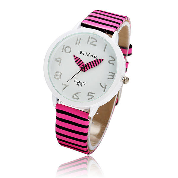 WOMAGE Fashion Women Pencil Pointer Striated Strap Leather Quartz Watch