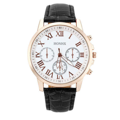 WOMAN'S WHITE FACE ROMAN NUMERALS WITH BLACK FAUX LEATHER STRAP