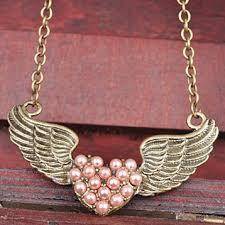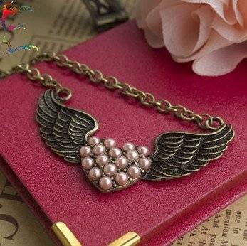 Women Bronze Angle Wing Heart Love Chain Necklace Jewelry