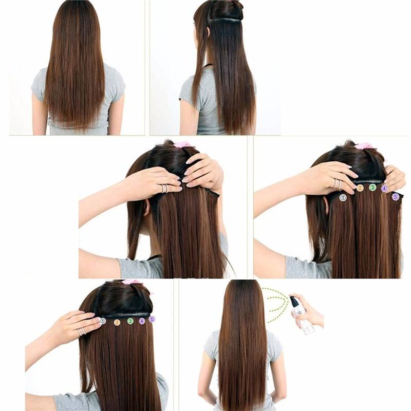 Features: 1. Nice design, beautiful appearance, with 5 clips. 2. Fashion design, you can wear it to parties or for daily use, it should be fit on most people. 3. You can use the blower (cold air) or hair stick (better not high temperature) to change the style yourself. 4. The item is Easy to wash and care just using a dish of shampoo in cold or lukewarm water.