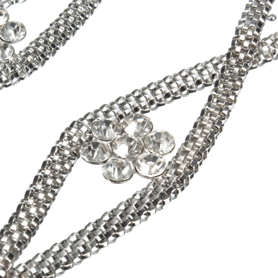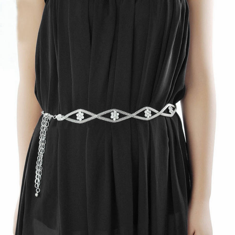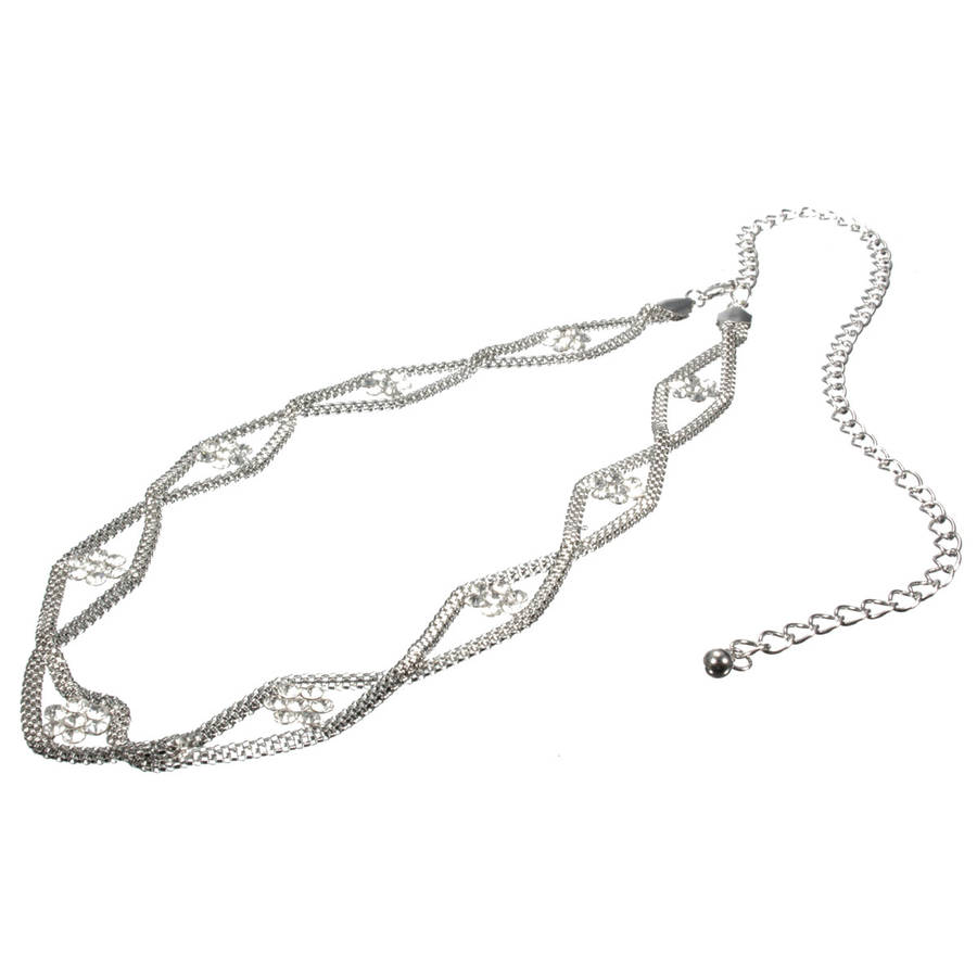 Women Flower Rhinestone Silver Waist Belt Chain Body Jewelry