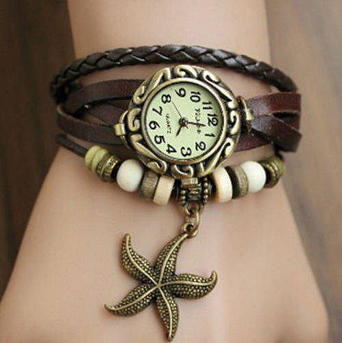 Women Genuine Leather Watch, Bracelet Wristwatches Feather/Seastar/Butterfly / 10 Colors