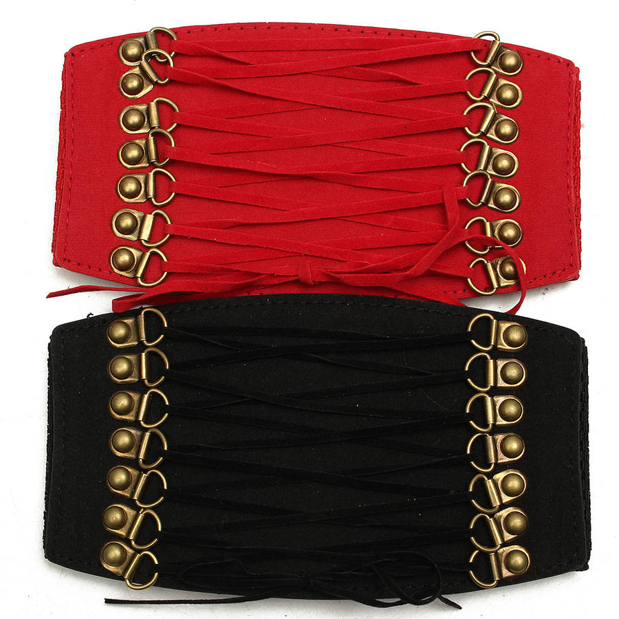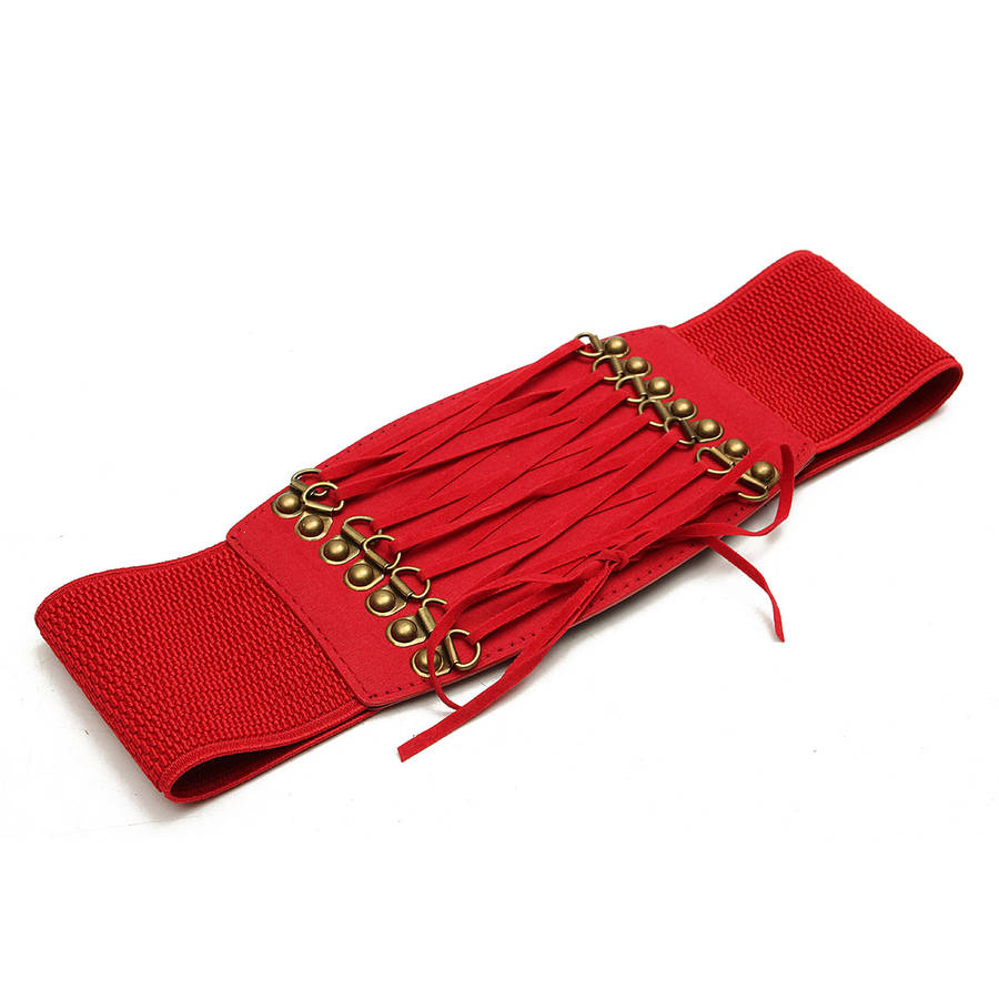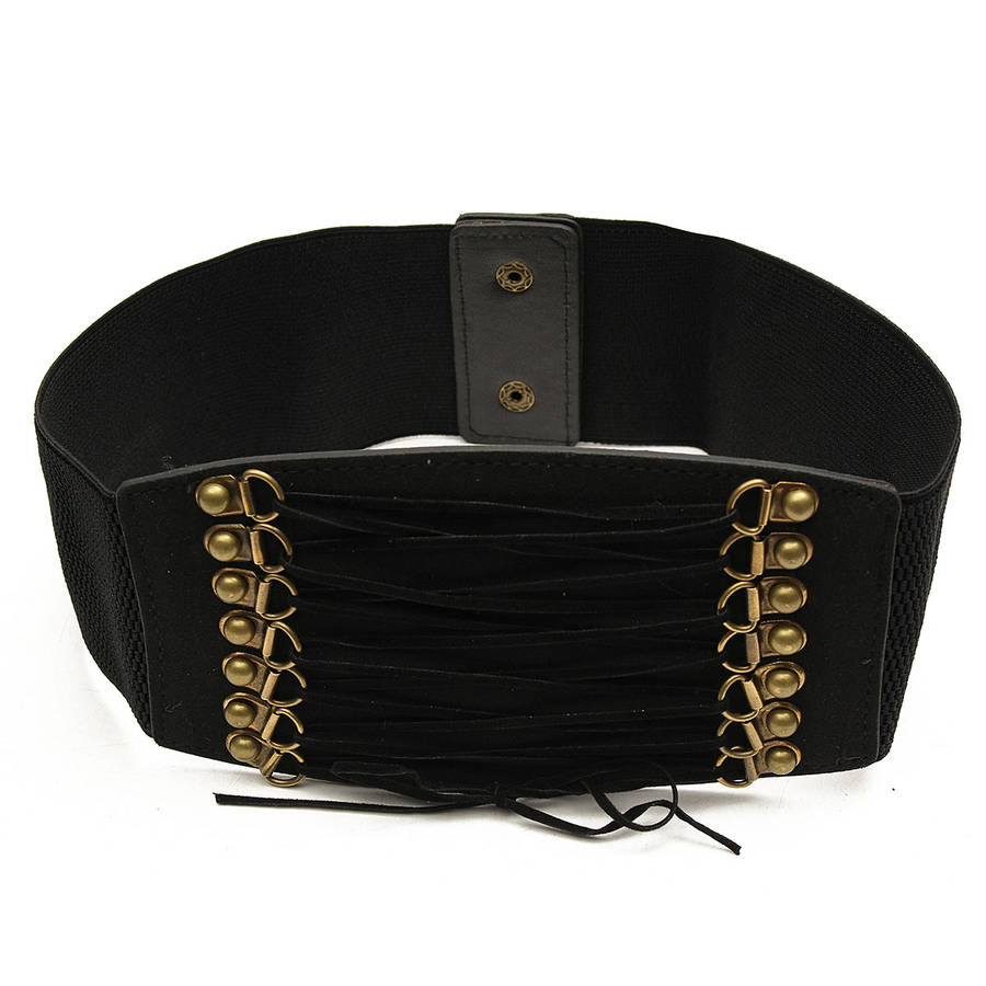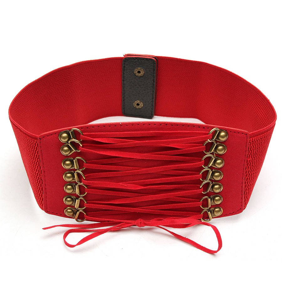 Women Ladies Wide Lace Up Elastic Waist Belt Waistband Corset Dress Accessory