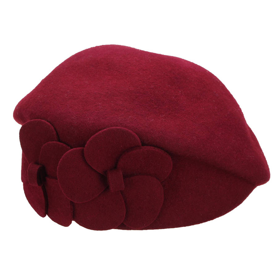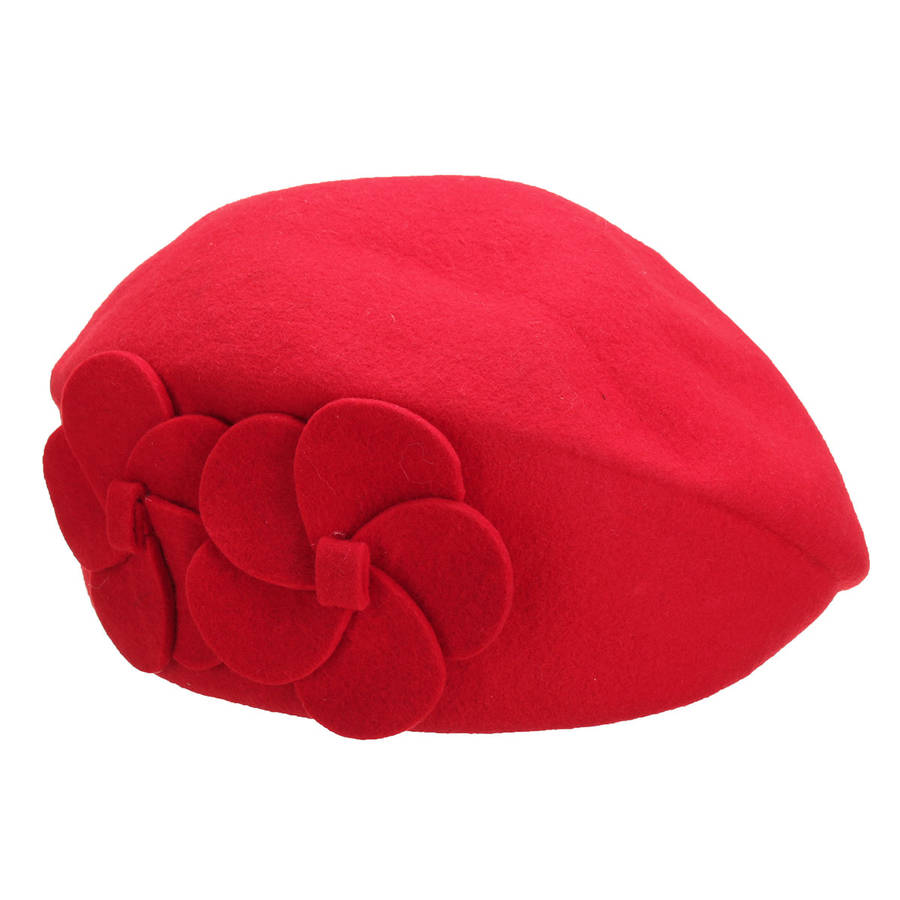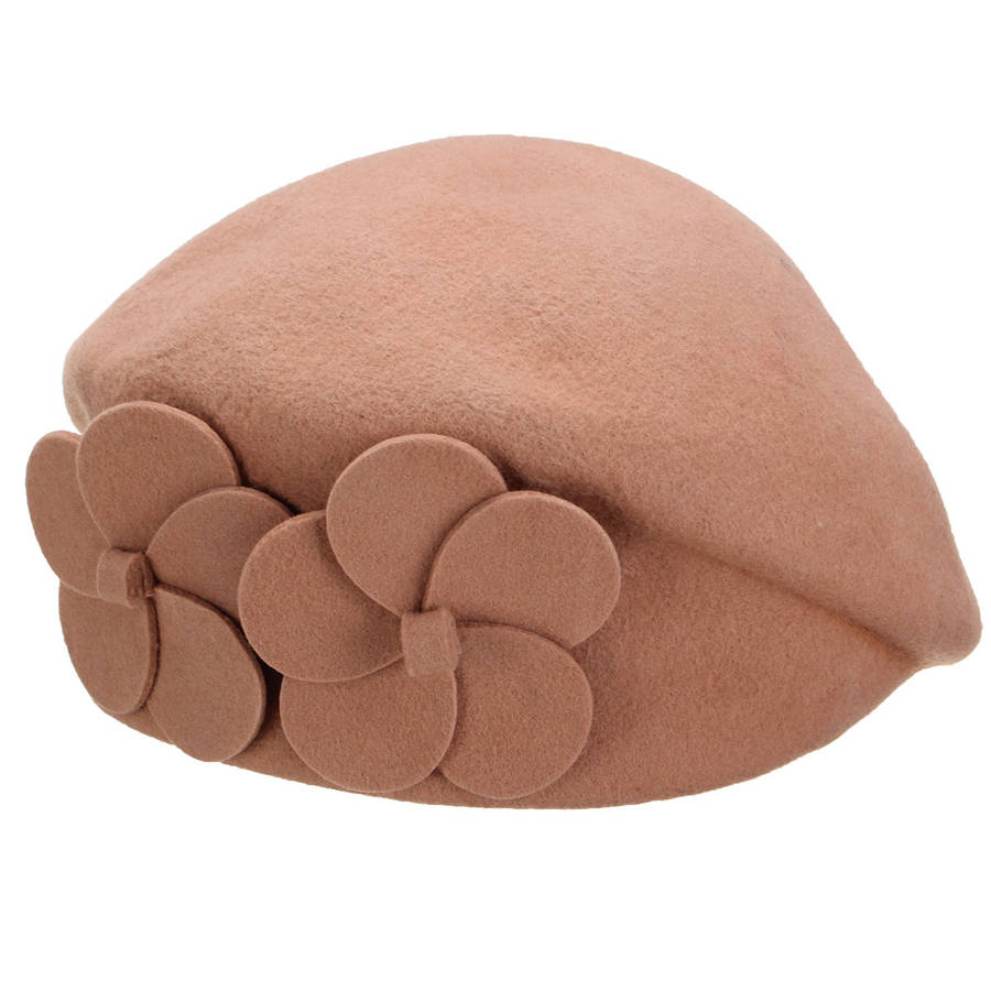 Women Ladies Wool Beanie Cap Warm Fedoras Felt Flower Beret Ski Tam Hat