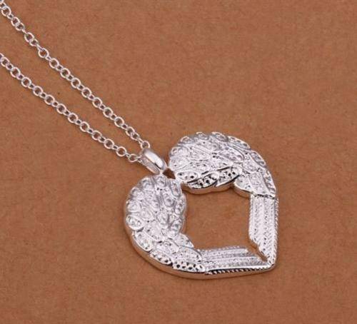 Women Silver Plated Delicate Angle Wing Heart Love Chain Necklace Jewelry
