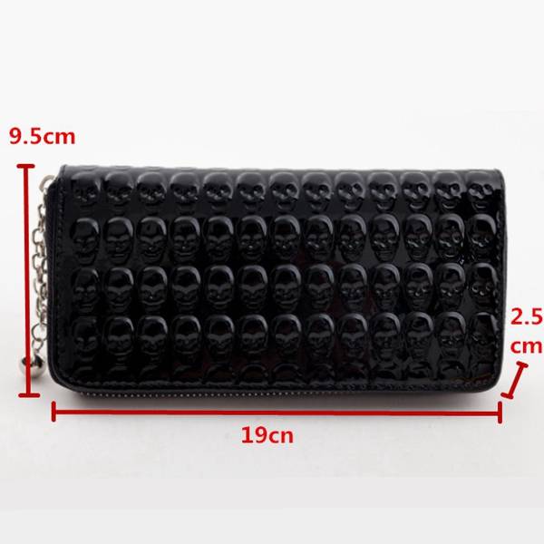 It is a particular women PU leather wallet, there is special skull embossed in purse.Decorated with unique design, it can make you the focus in any occasion.