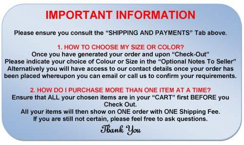 PLEASE REFER TO THE SHIPPING AND PAYMENTS TAB BEFORE CONCLUDING YOUR PURCHASE