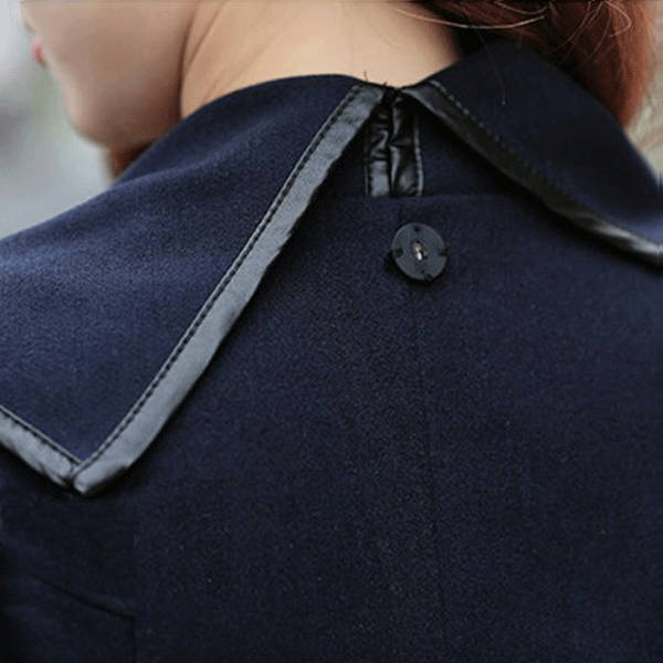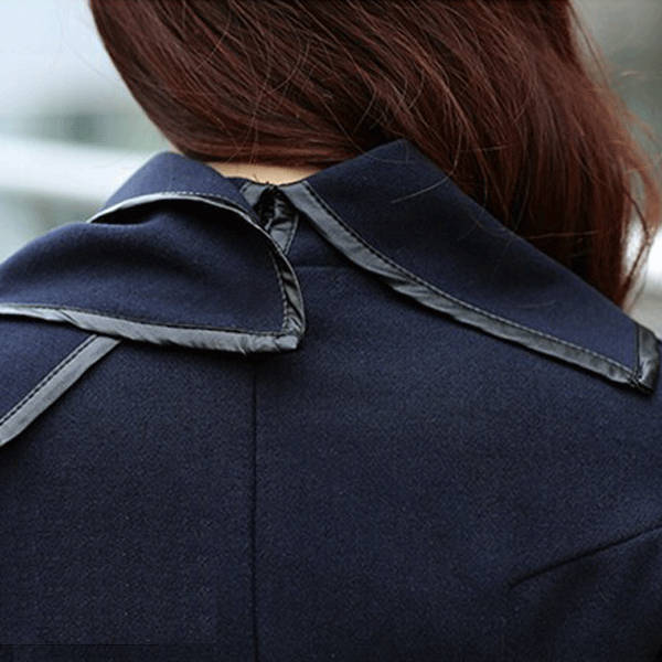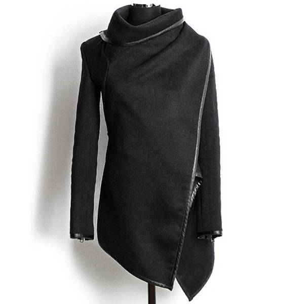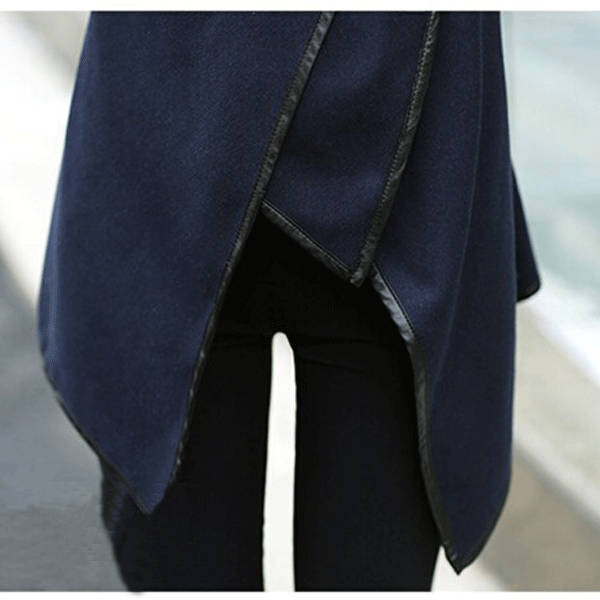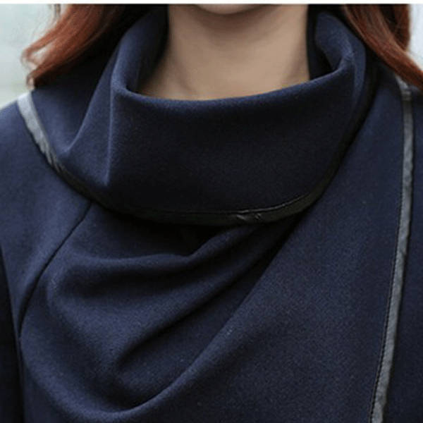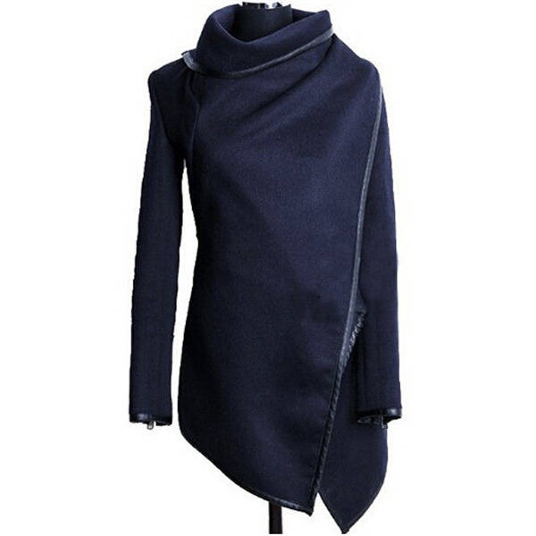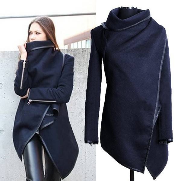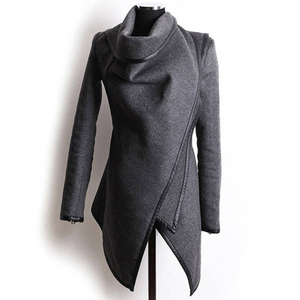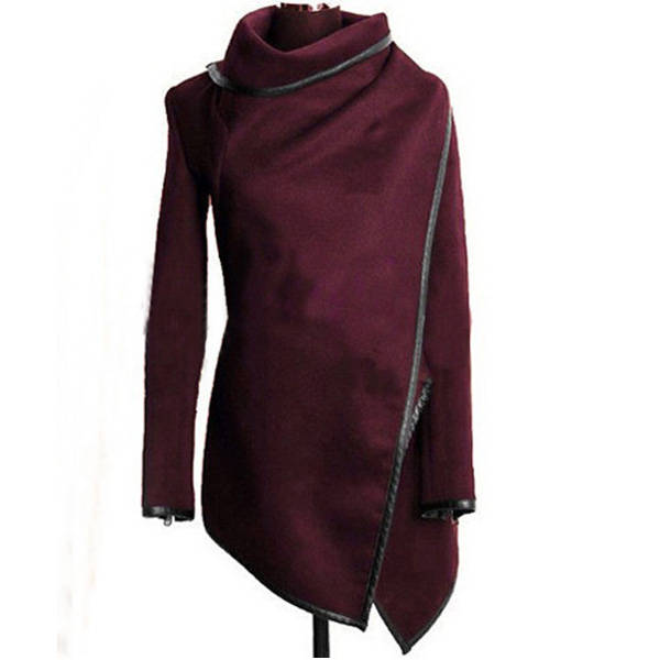 Women Trench Woolen Coat Irregular Turtleneck Jacket Zipper Slim Coat