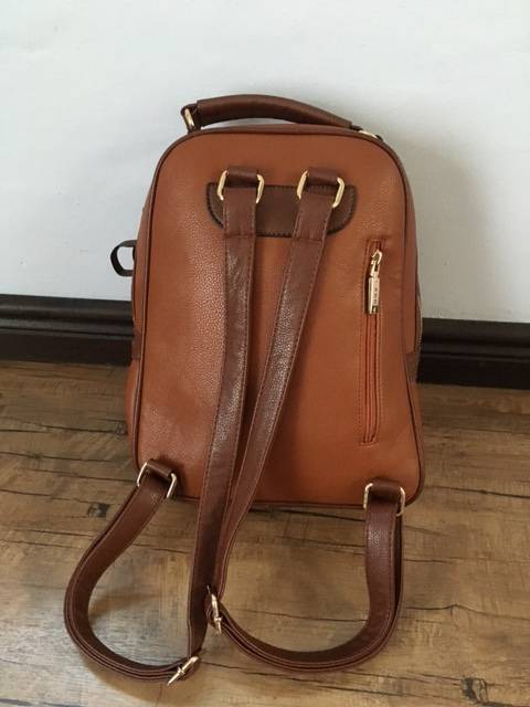 Women Unisex Fashion Stylish Faux Brown Leather Vintage Style Multi Function School Backpack Bag