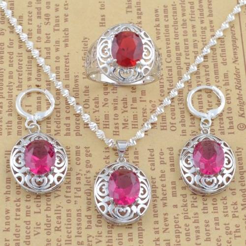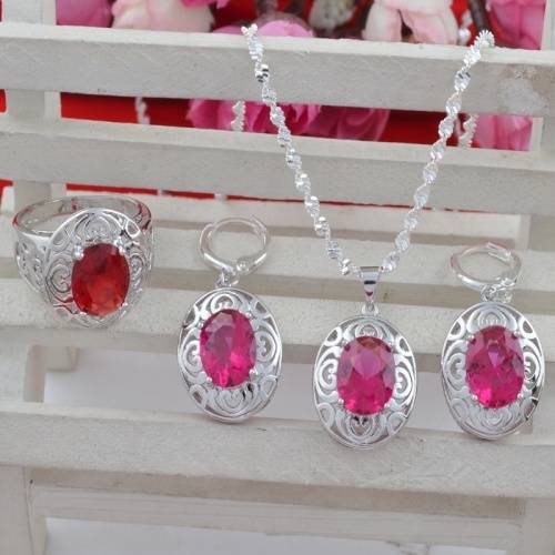(please note that ring is red and necklace and earrings are pink)