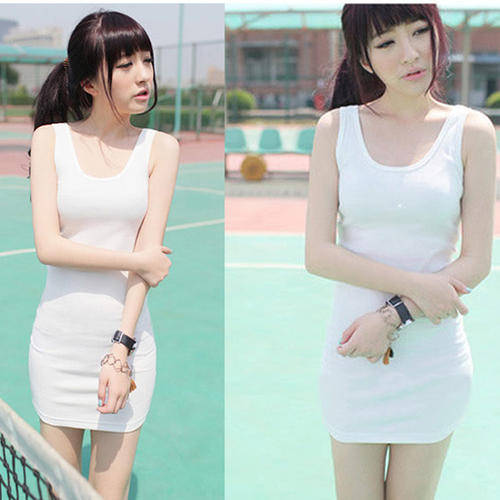 Women's Bodycon Sleeveless Long Tank T-Shirt Tops Mini Dress