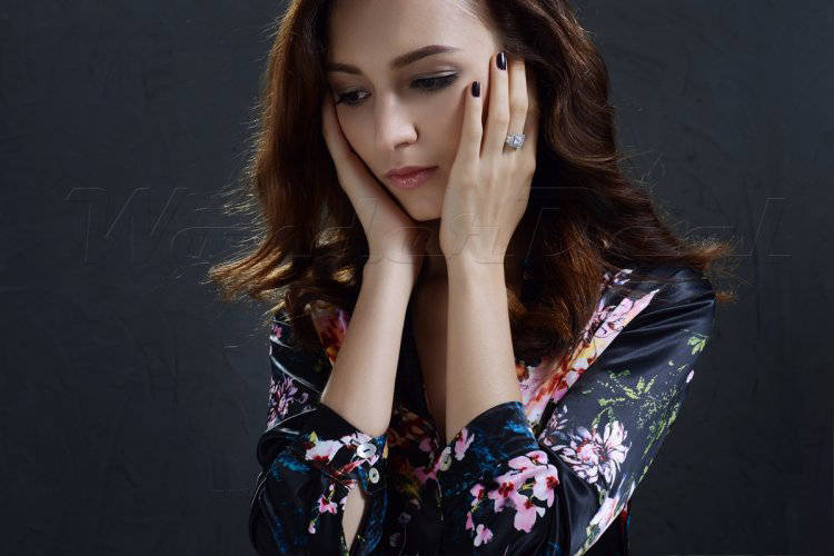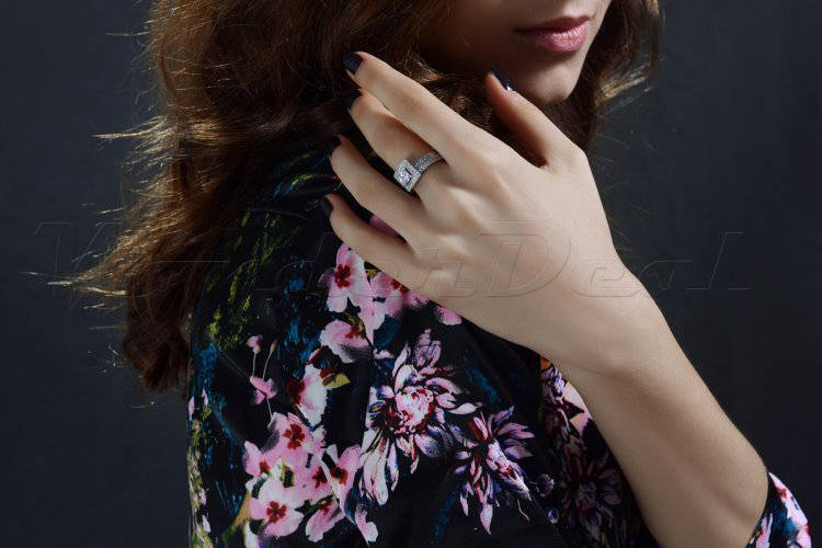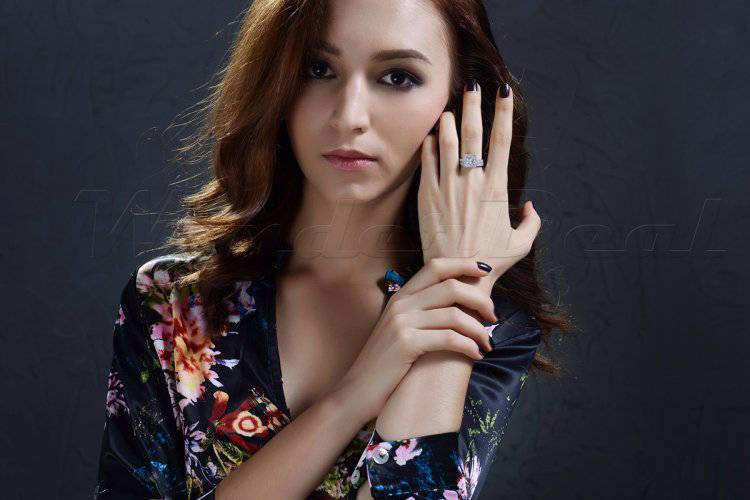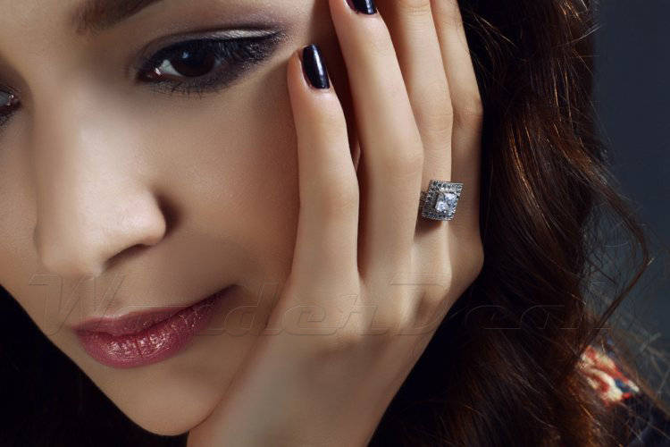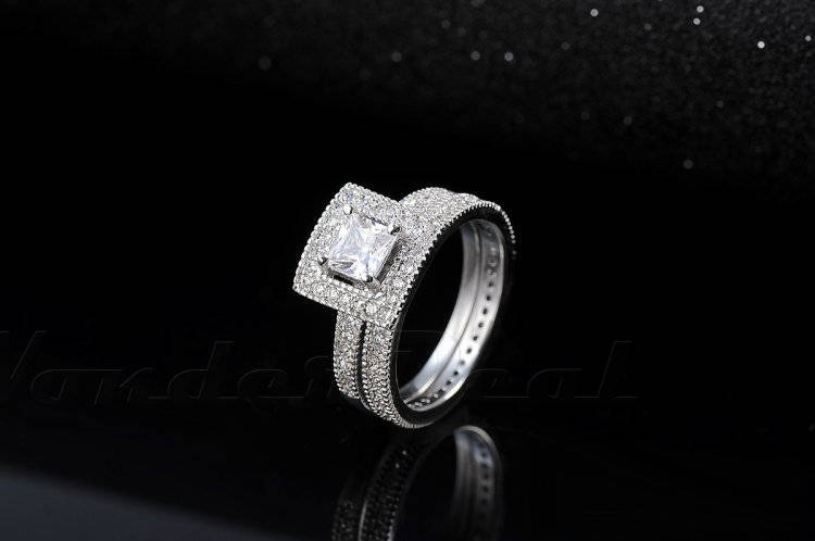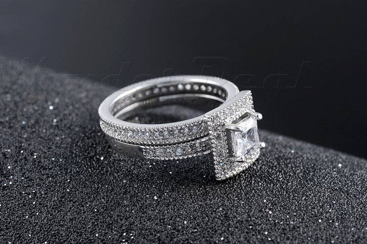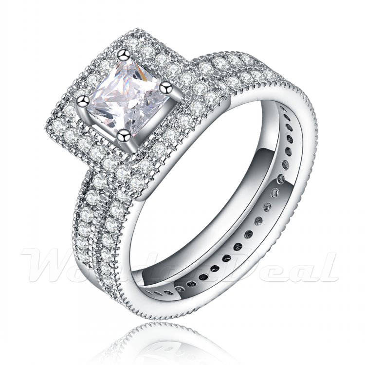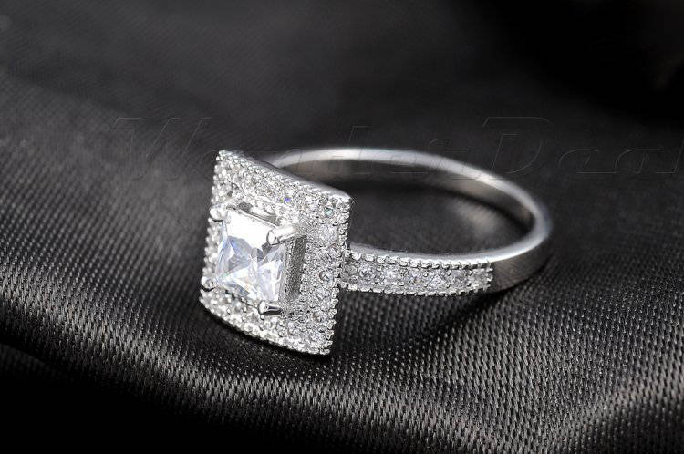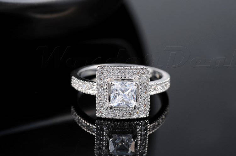 Women's Fasion Zircon Ring Dazzling "Eight Swords Eight Hearts" Shape White Gold Plated Alloy