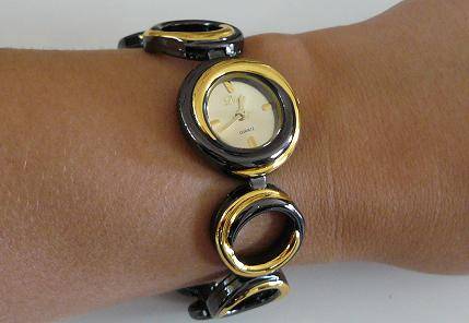 GOLD & BLACK WOMENS QUARTZ WATCH