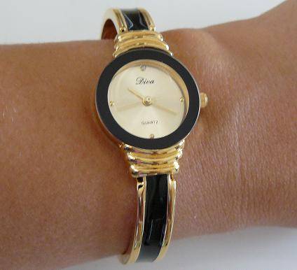 GOLD & BLACK WOMENS QUARTZ WATCH