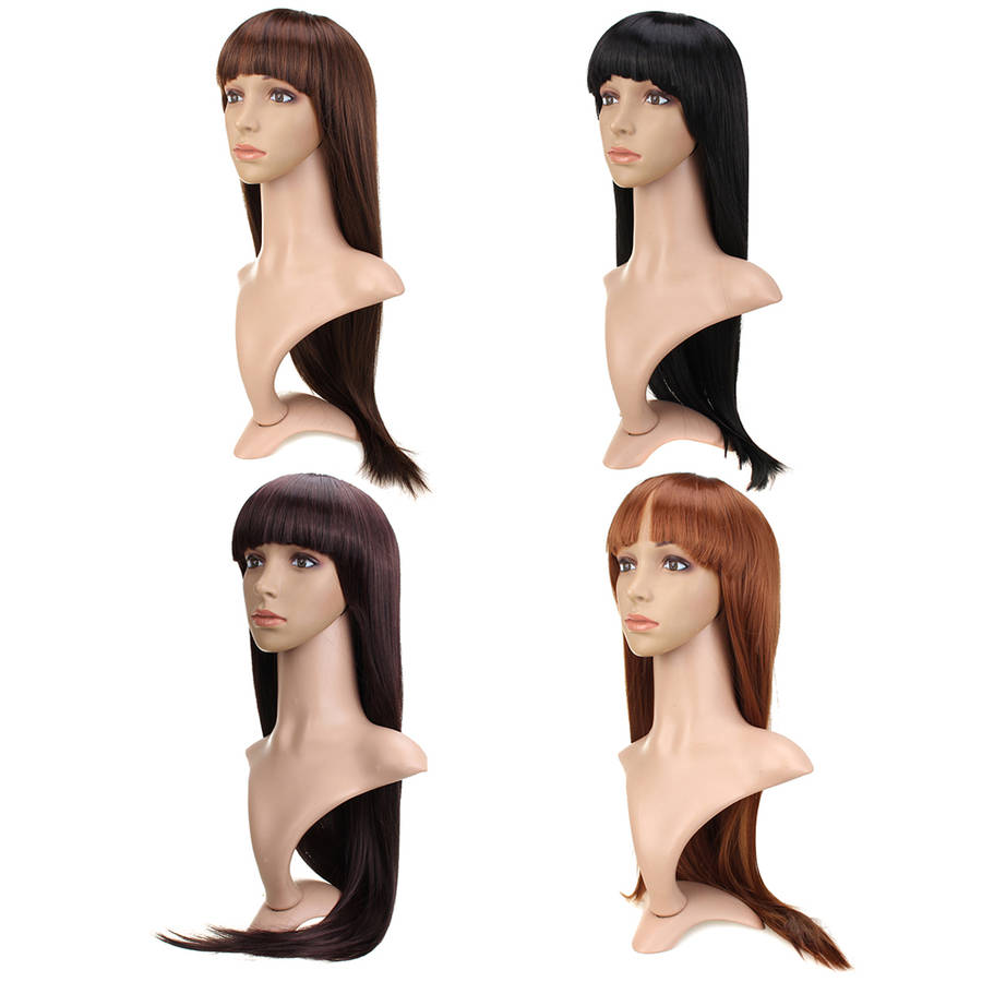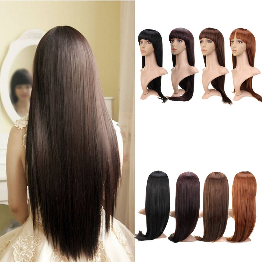 Womens Neat Bang Long Straight Hair Wigs Full Wigs