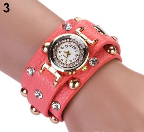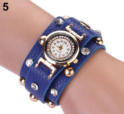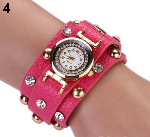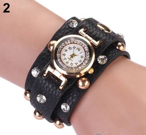 Unique in design, this eye-catching Punk Crystal Studs Wind Faux Leather Bracelet Watch is a really special gift for you and your friends.