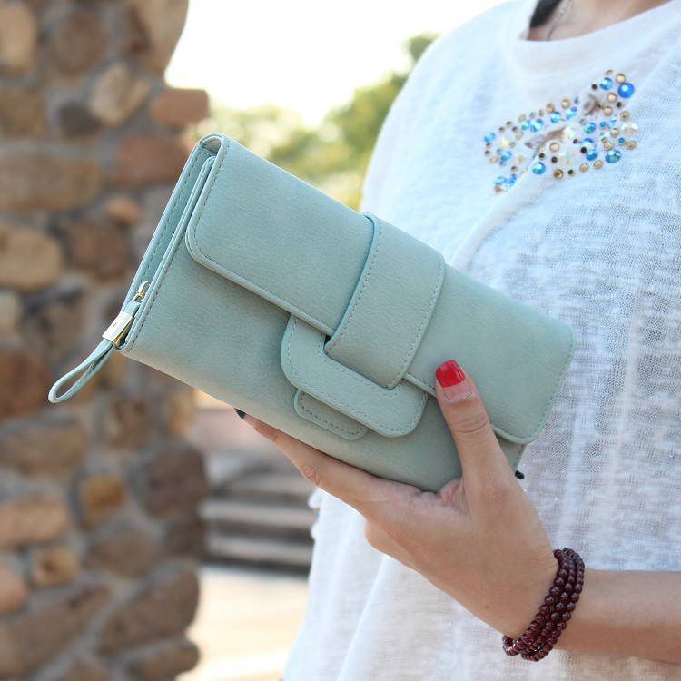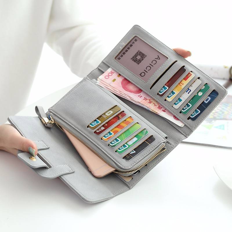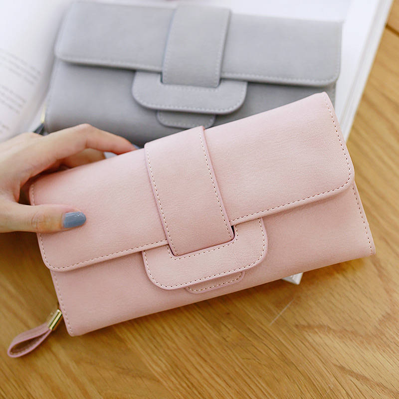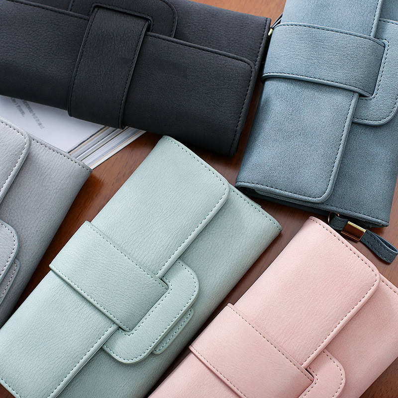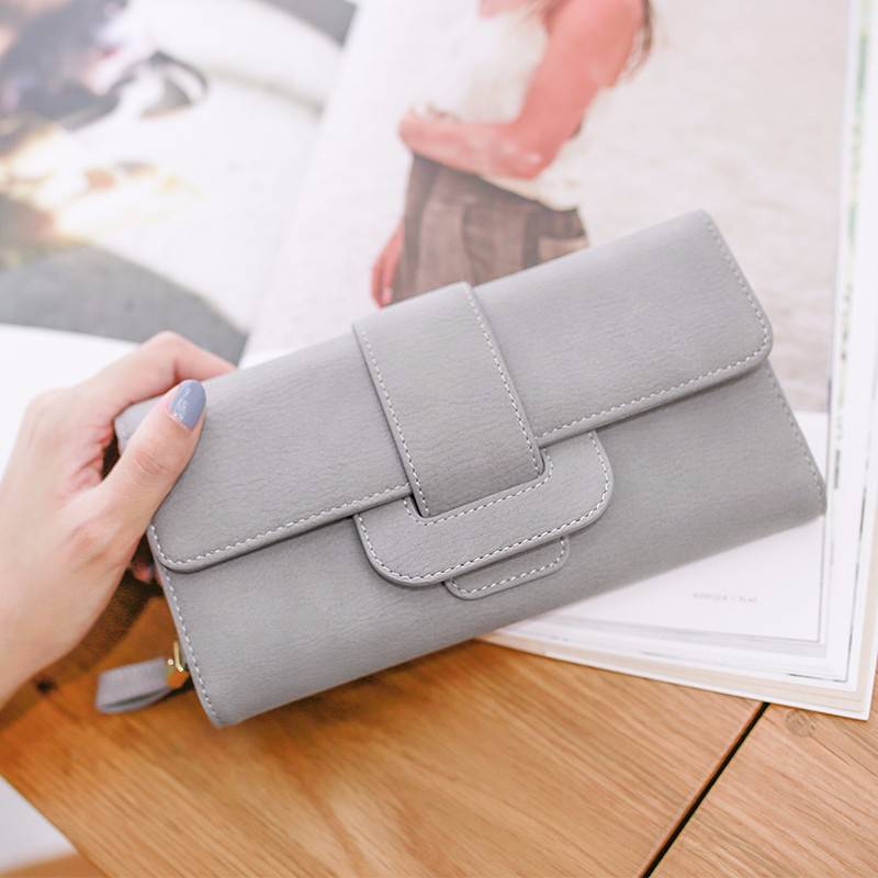 Women's Wallet Long Style Multi-card Slots Three Folding Matte Leather Bag For