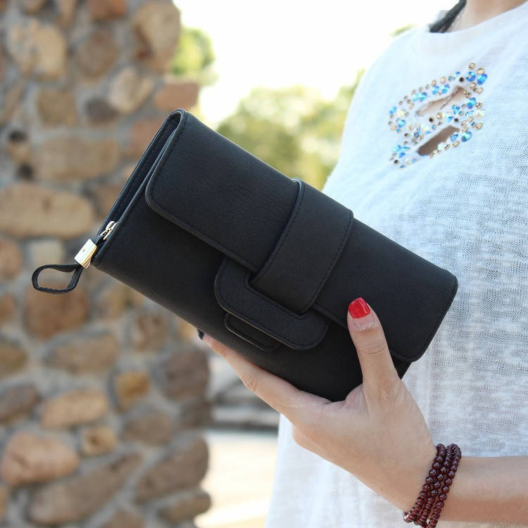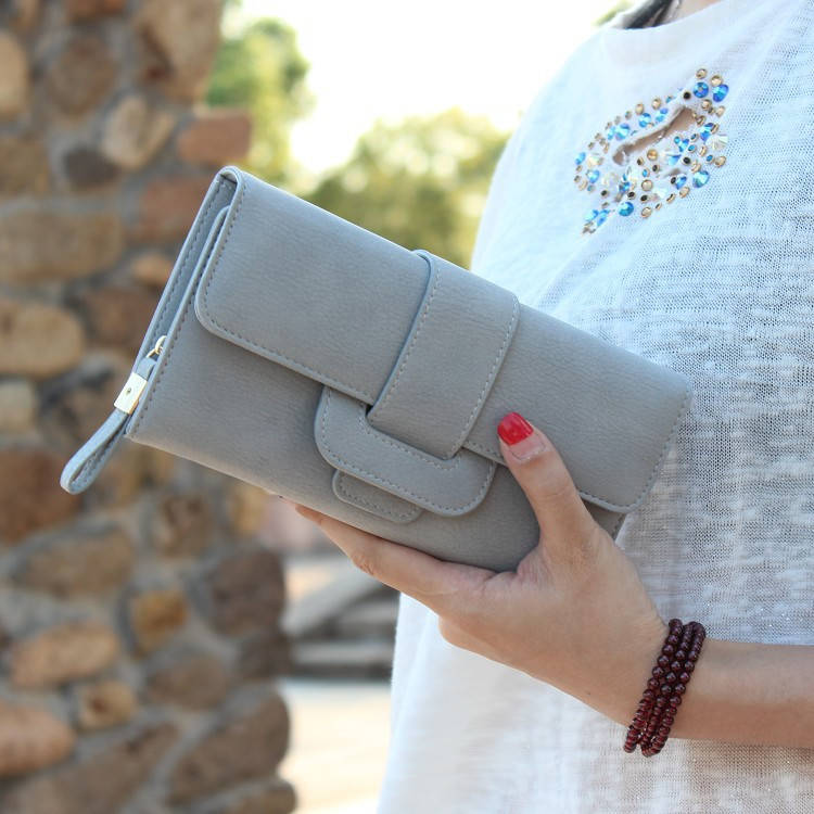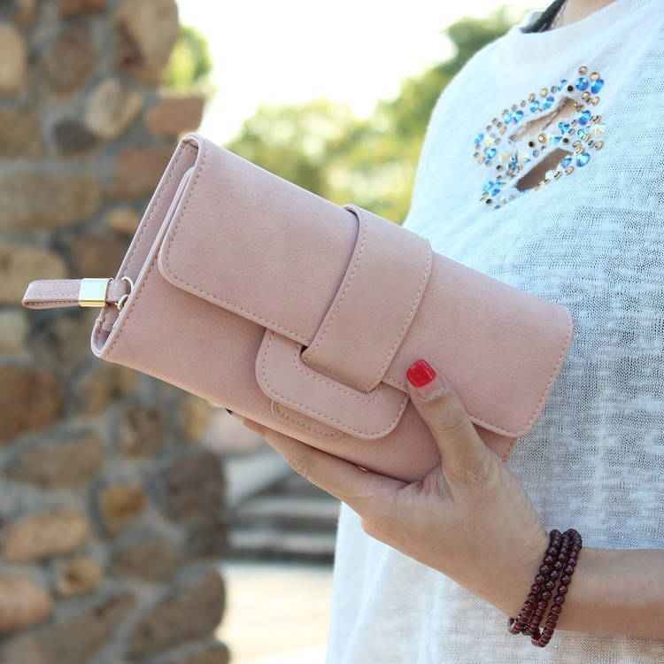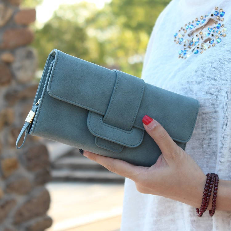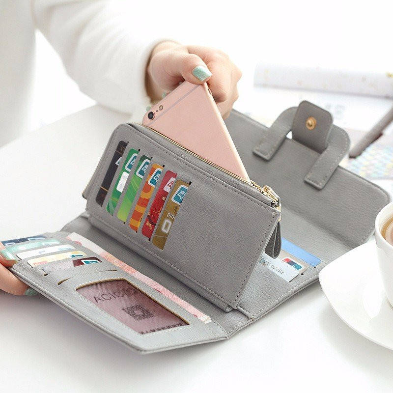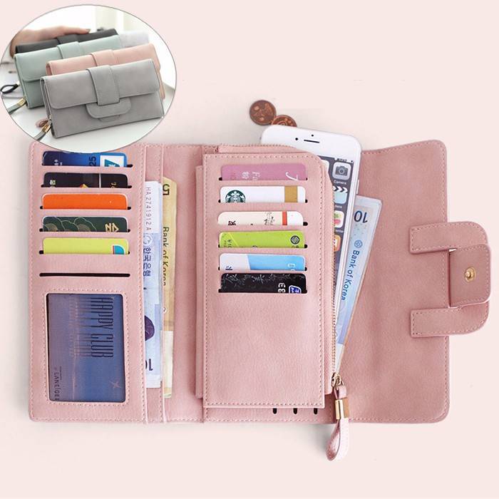 Women's Wallet Long Style Multi-card Slots Three Folding Matte Leather Bag For
