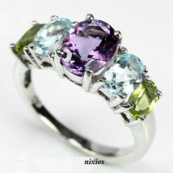 WONDERFUL GENUINE MULTI GEM 925 STERLING SILVER RING - SIZE 9(S)