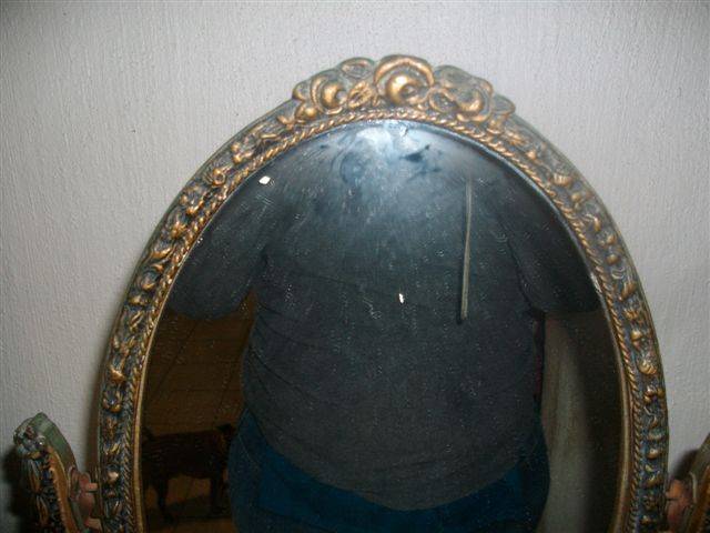 Wondeful orante vintage mirror on stand item there is some damage noted otherwise good used condition so lovely please see all pictures , please note postage fee will be R120