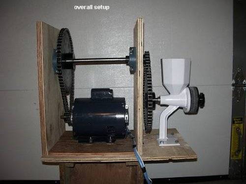 Not everyone wants to crank their hand grain mill by hand all the time and that is why the Wonder Junior grain mill gives you options for other alternative powering options. These options include drill; bike power; and motor setup. To hook up the Wonder Junior grain mill to a motor or a bike you can use our Pulley Attachment or even chain sprockets. With our Drill Bit Attachment you can run the Wonder Junior with you high powered 1/2 inch drill. We have found a few examples of alternative power that people have used to operate their Wonder Junior grain mill with. We suggest that you take precautions to make sure your alternative power setup is safe; WonderMill is not responsible for injuries caused by your alternative power setup.