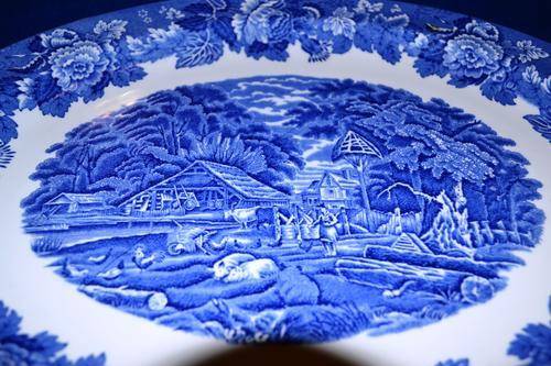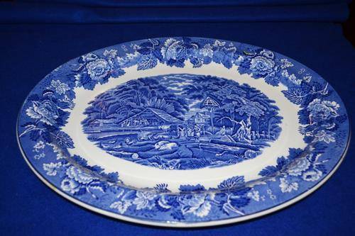 This beautiful vintage blue and white platter measures 36cm in length and 28cm in width