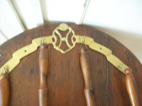 A lovlely set of brass Kitchenalia with wooden handles it is in good condition.