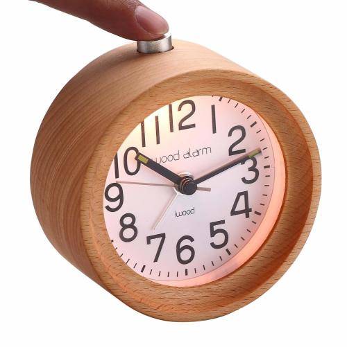 Wooden Alarm Clock Handmade Mute Snooze Nightlight With Luminous