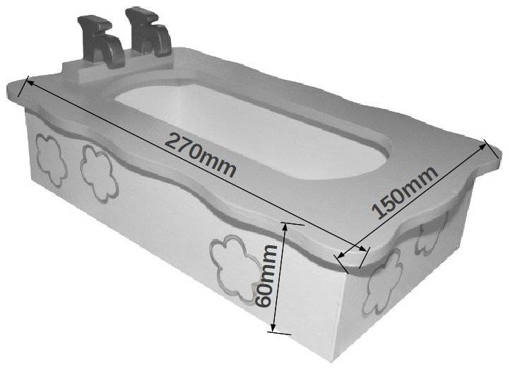 A must-have for Barbie's bathroom, this wooden bath will delight your daughter and add a finishing touch to her dolls house. Complete with silver coloured taps and a painted in plug!