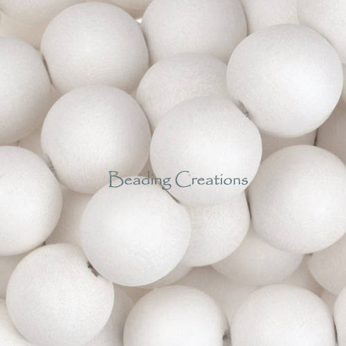 WOODEN BEADS - NATURAL - BRIGHT WHITE - ROUND - 15mm - 6PCS