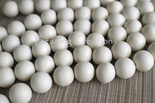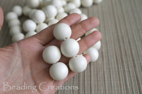 WOODEN BEADS - NATURAL - IVORY WHITE - ROUND - 25mm - 5 PCS