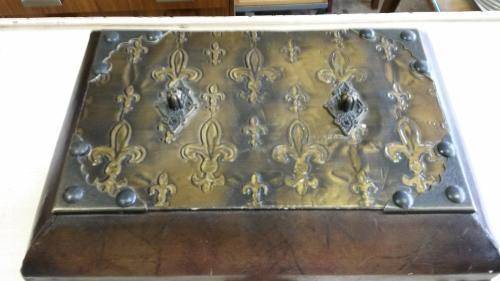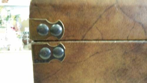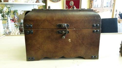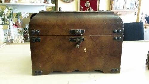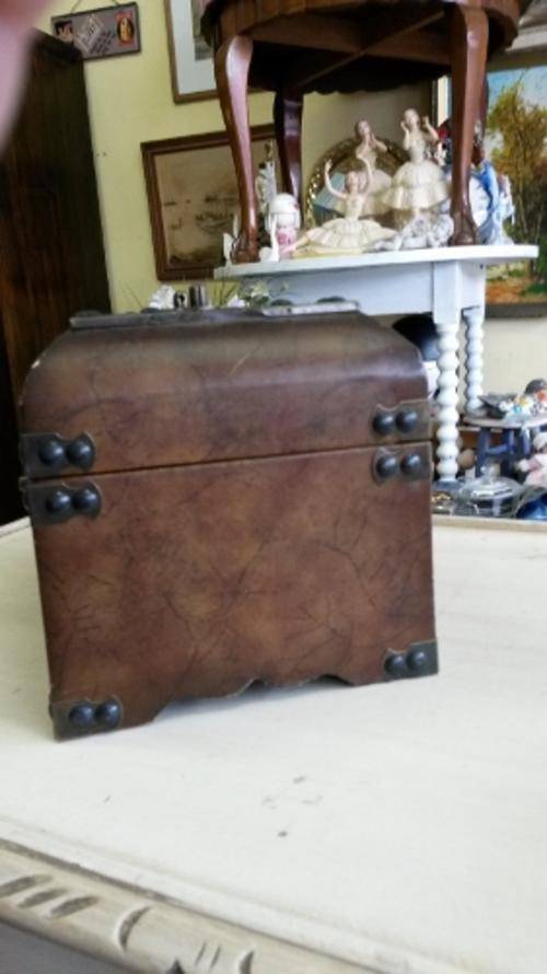 Wooden box. size: width 23cm. depth 16cm. height 16cm. Its missing the handle on top. Has a few scratches on the front.