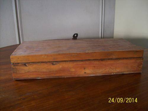 Wooden box, hand made, looks like printers tray. With lid, can close or hang on wall. Size L 52 x 23 x 10, and weight 4kg.