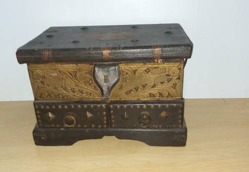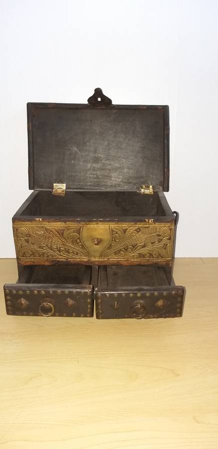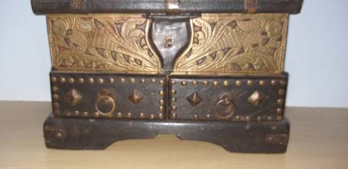 Wooden Box with Brass Detail. size: height 20cm. width 30cm. depth 18cm
