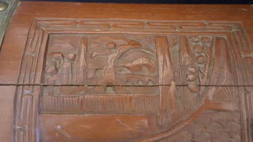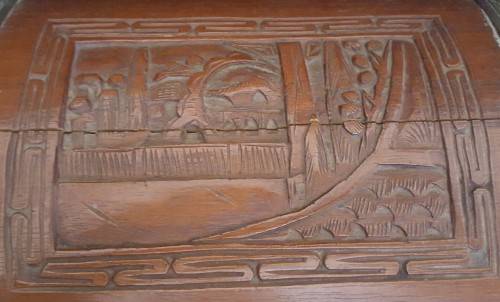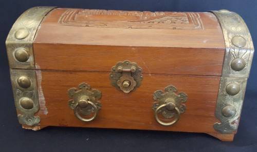 PLEASE NOTE CRACK ON LID. FEW BRASS PIN'S MISSING