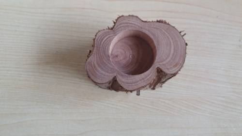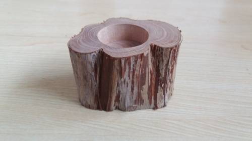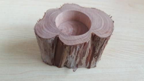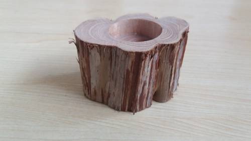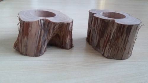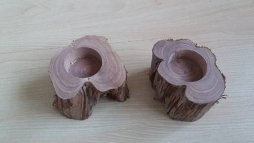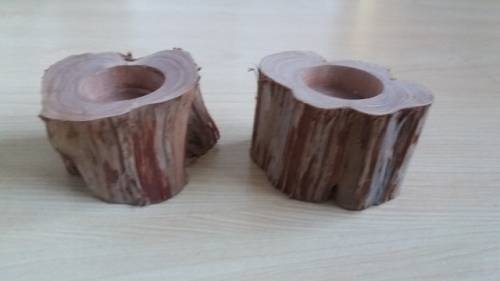 Wooden candle holders. There are 2 available at R40 each. size: width 8cm. depth 7cm. height 5cm.