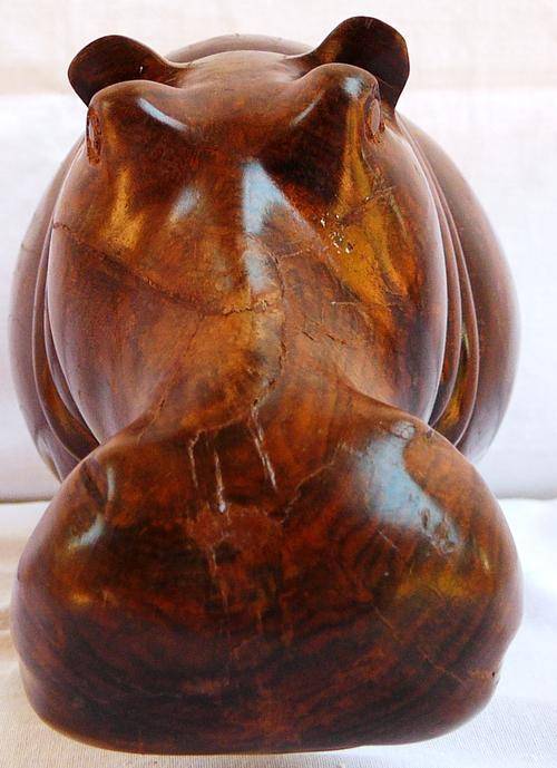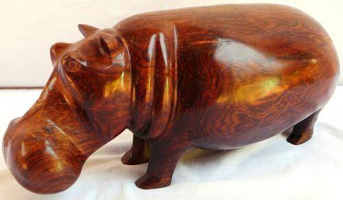 This Carving of a Hippo is carved from a Dark Reddish coloured Heavy Wood, it is 140 mm high 300 mm long, 125 mm wide and weighs 2.3 kgs.