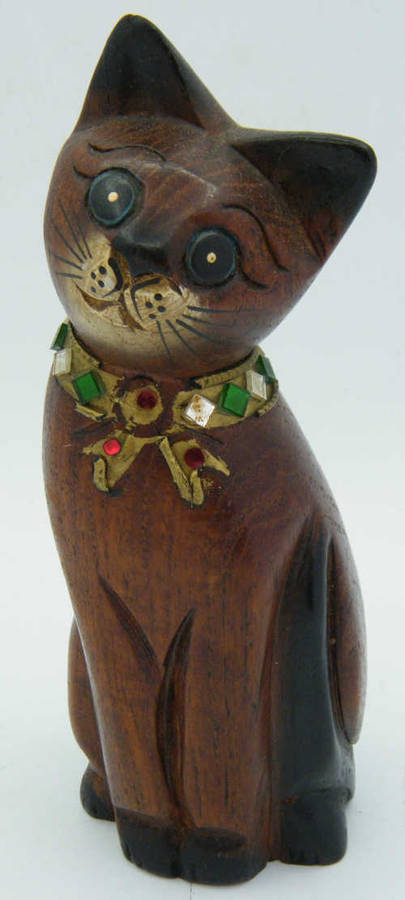 Wooden Cat Statue - 17.5cm - as per photo