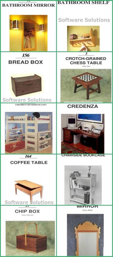 1.4 board bench, 2.Address Plaque, 3.Adirondack Chair, 4.Adjustable Plant Shelves, 5.Adjustable Plant Shelves, 6.Arts and Crafts Chair, 7.Baby Changing Table, 8.Barrister Bookcase, 9.Basic Board Fence, Basic Board Fence, 10.Basic Board Fence, 11.Basic Board Fence, 12.Basic Board Fence, 13.Bedside Table, 14.Bird House, 15.Bird House, 16.Book Case 1 and 2, 17.Bunk Beds, 18.Computer Desk, 19.Console Table, 20.Console Table, 21.Corner Cabinet 1 and 2, 22.Clothes Rack, 23.Clothes Rack, 24.Clothes Rack, 25.Clothes Rack and many more!