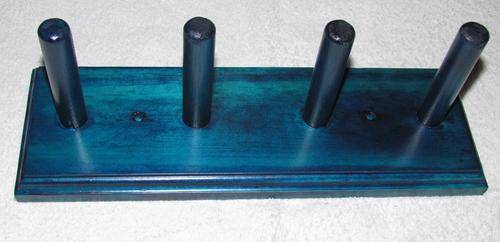 This unit is new has four places to hang items and is made from wood. It has been stained in a Aqua blue / Sea blue colour and then varnished. The wood stain used also allows the natrual wood grain to come though.