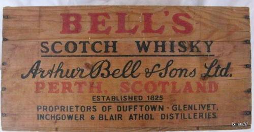 WOODEN CRATE : BELL'S SCOTCH WHISKY : 43x30x21.5cm : STAMPED S. & CO. CAPE TOWN