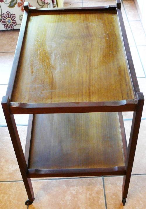 This Mahogany Tea Trolley is in very good condition, there are a few small scuff marks which show that it has been used, possibly to hold a hot tray. It measure 650 mm x 440 mm x 655 mm and weighs ± 6 kg.