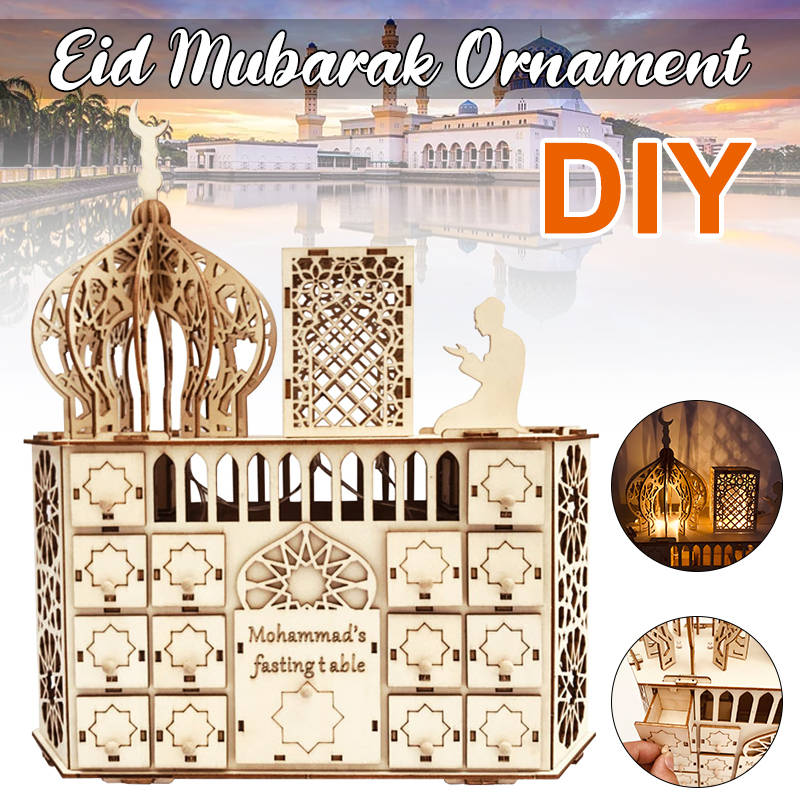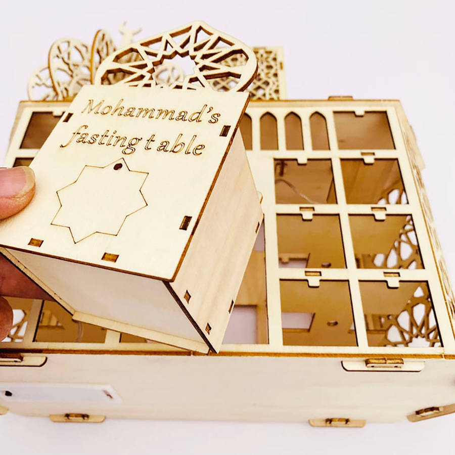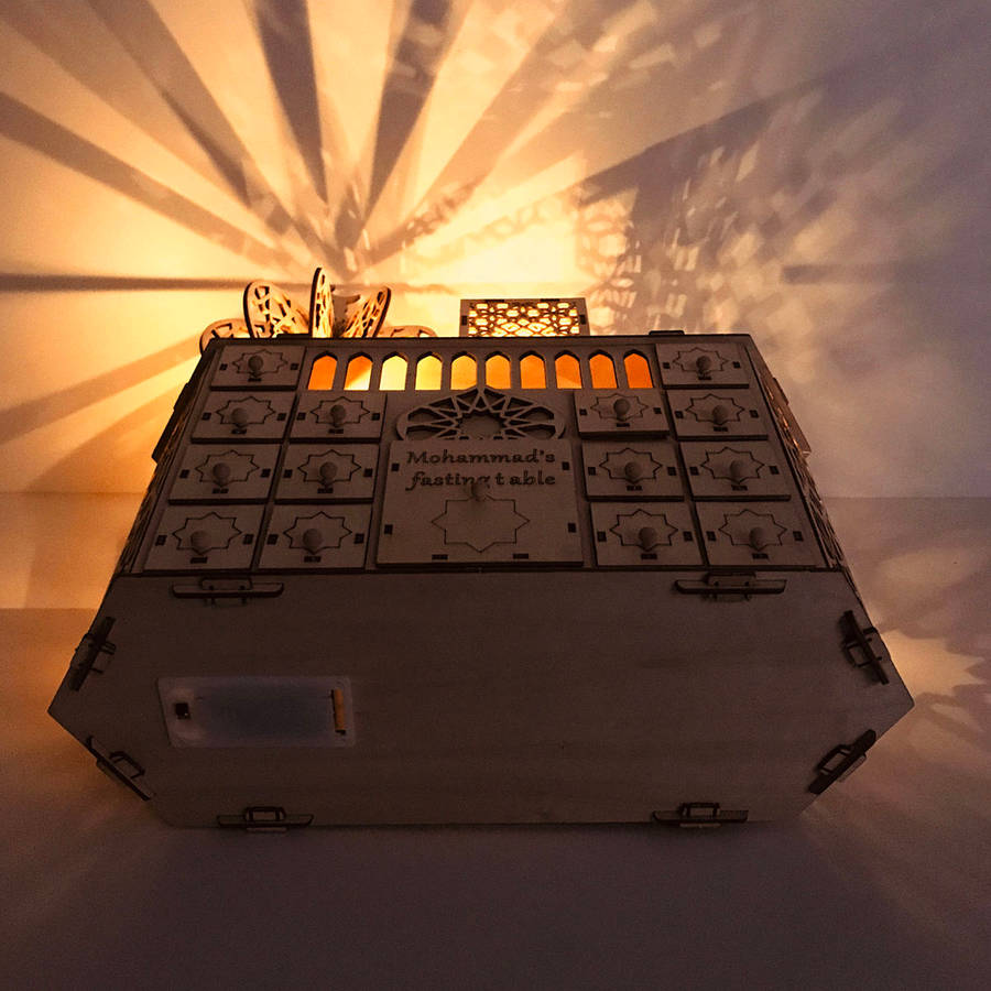 Wooden Mubarak Ramadan Advent Calendar 30 Day House Drawer LED Decor