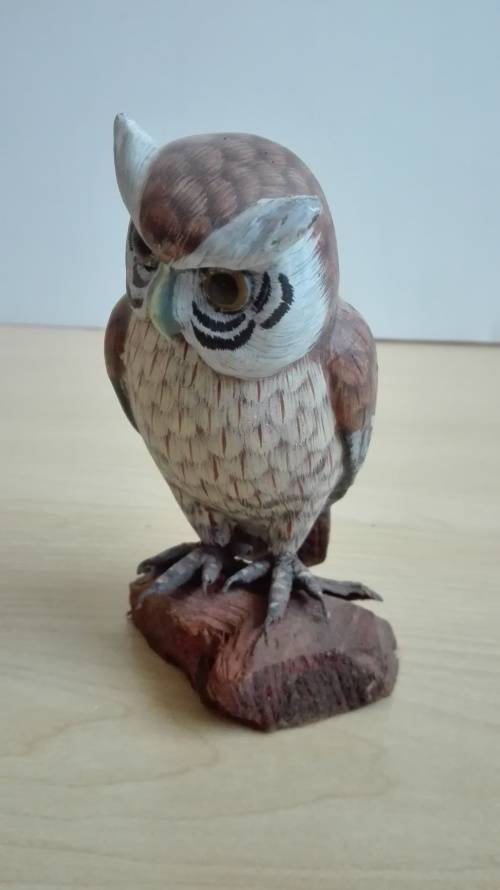 Wooden Owl Figurine. size: height 13cm. width 7cm. depth 6cm